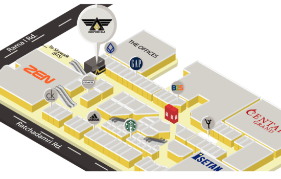 - Central World ชั้น 1 ติดกับ Tourist Information เปิดบริการ 10:00 am ー10:00 pm